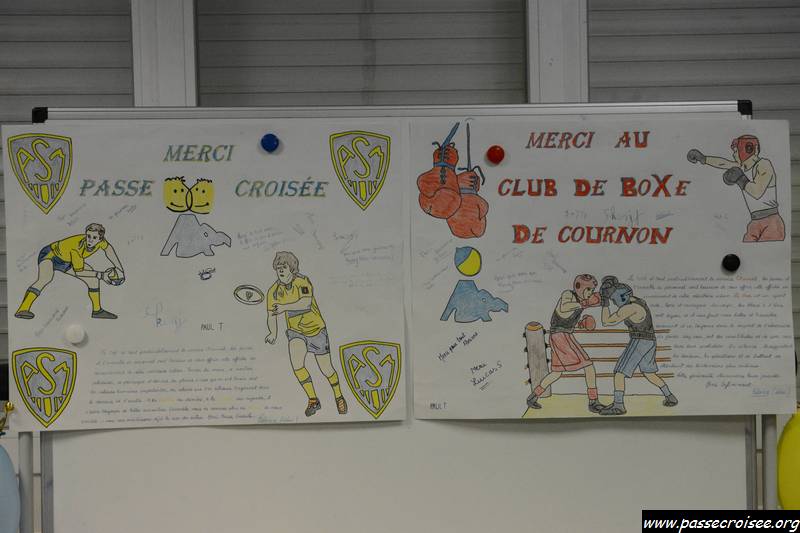 Pour cette action nous avons voulu associer le club de boxe de Cournon qui a reversé à notre association l’intégralité des gains de son gala du mois de juin, et même bien plus. En effet Jacques, Stéphane et Damien du Cournon boxe nous ont remis un chèque de 400€ lors de notre visite au CMI. Cette visite commune au service Charmeil leur a permis de prendre des contacts avec le CMI afin de proposer prochainement une animation boxe auprès des enfants.
